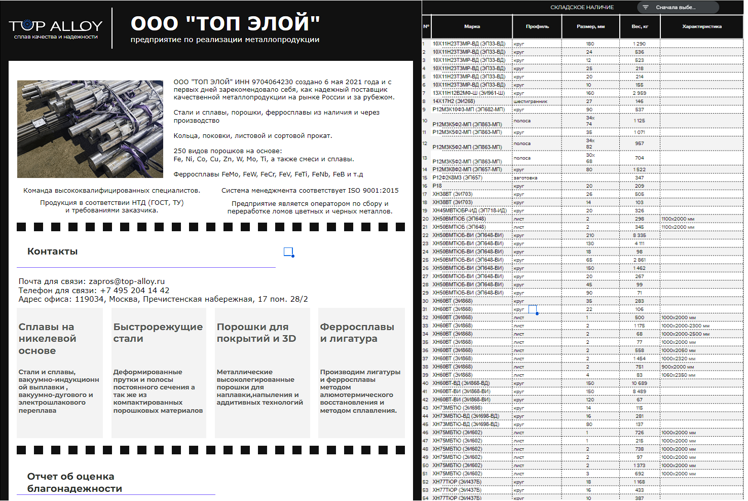 ООО "ТОП ЭЛОЙ" ИНН 9704064230 создано 6 мая 2021 года и с первых дней зарекомендовало себя, как надежный поставщик качественной металлопродукции на рынке России и за рубежом.
